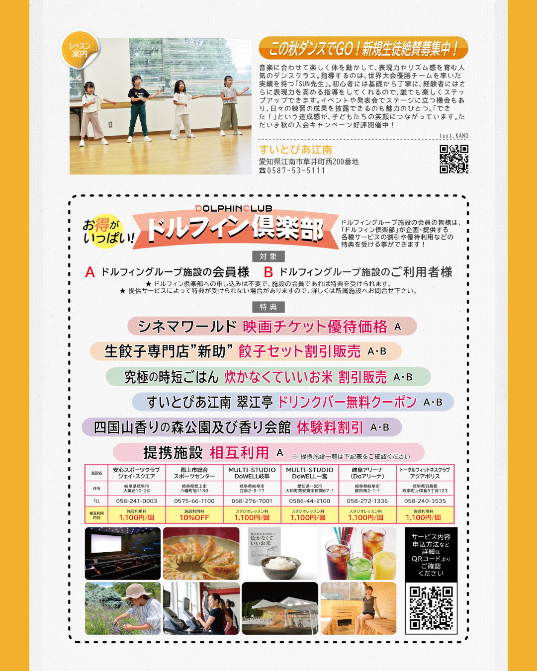 2025/10/02TOPICS広報誌『Do! DOLHIN』vol.100 皆様こんにちは! マルチスタジオドゥエル一宮です! ドルフィン株式会社 広報誌【Do DOLPHIN vol.100】発刊いたしました! ドルフィングループの施設紹介をしておりますので 是非見てください! 前の記事へ|TOPICS一覧に戻る| TOPICS カテゴリー TOPICS
